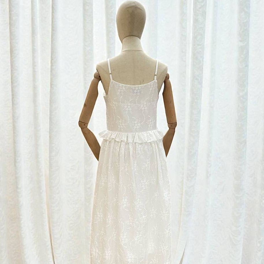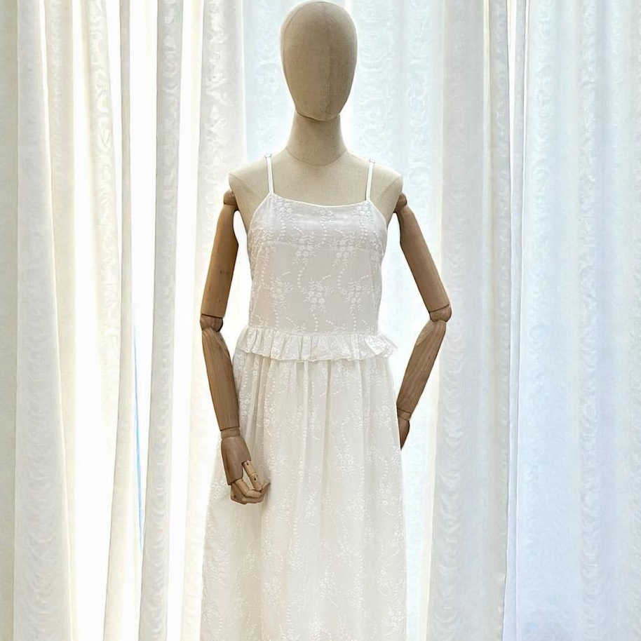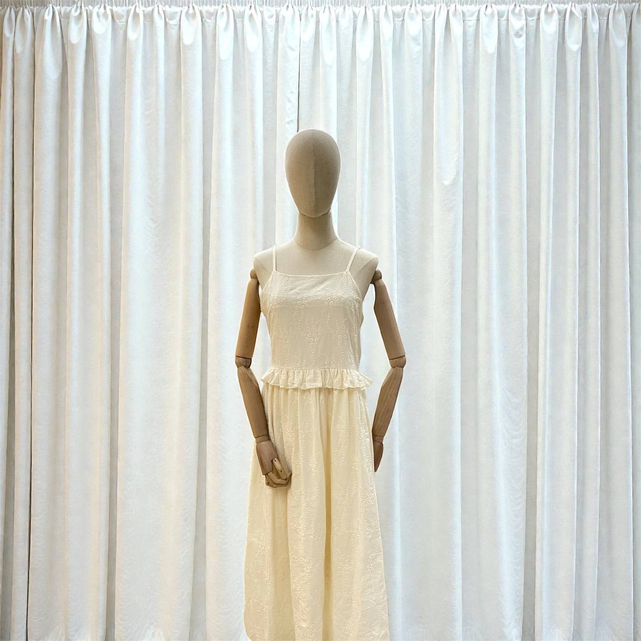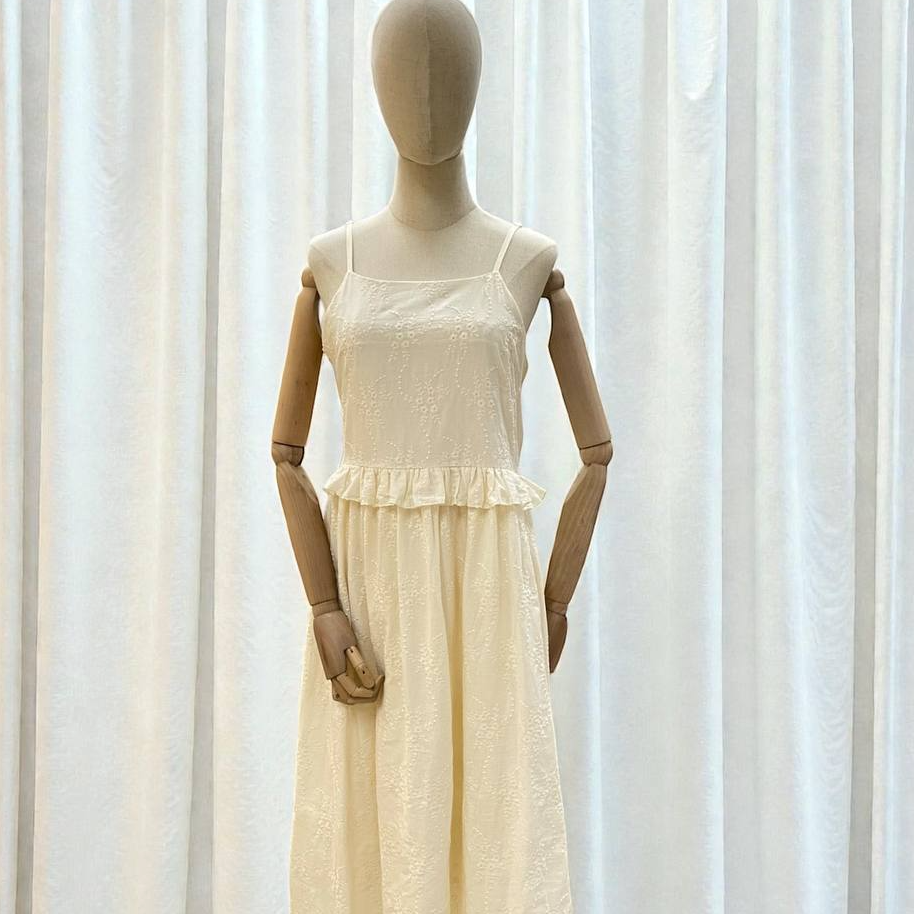 Minimal Ruffle Dress elevates simplicity with its clean silhouette and delicate ruffle detailing. Crafted in a soft, textured fabric, this piece exudes quiet luxury perfect for adding an understated elegance to any moment. Measurement: Buts: 90cm Waist: 126cm Length: 131cm