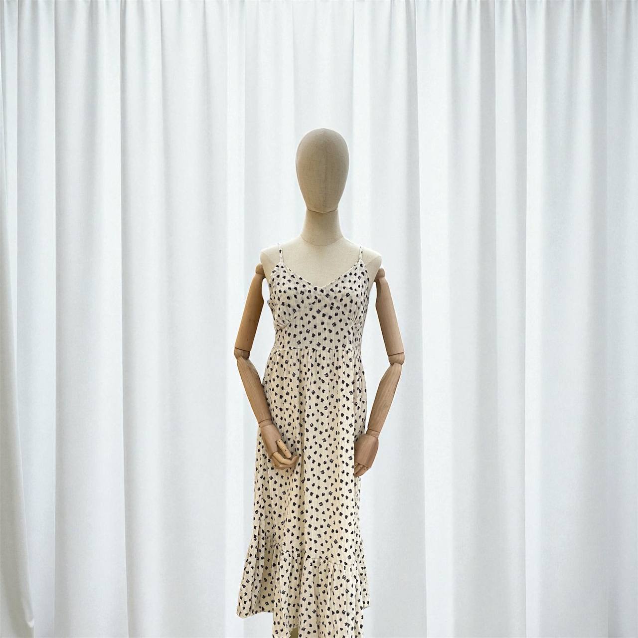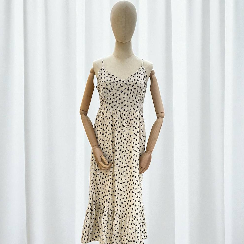 Minimal Bloom Dress blends subtle florals with a clean, refined silhouette creating an effortlessly elegant piece that elevates any moment with understated charm. Measurements: Bust: 90cm Waist: 130cm Hip: 136cm Length: 125cm
