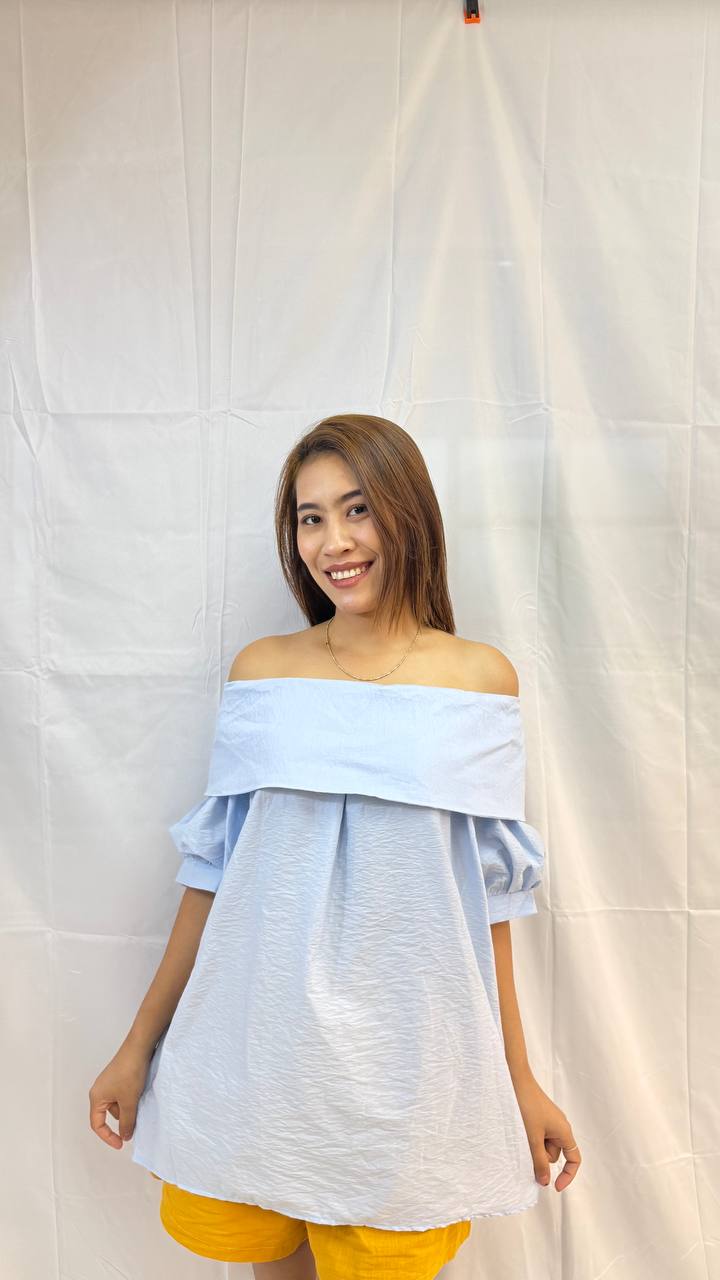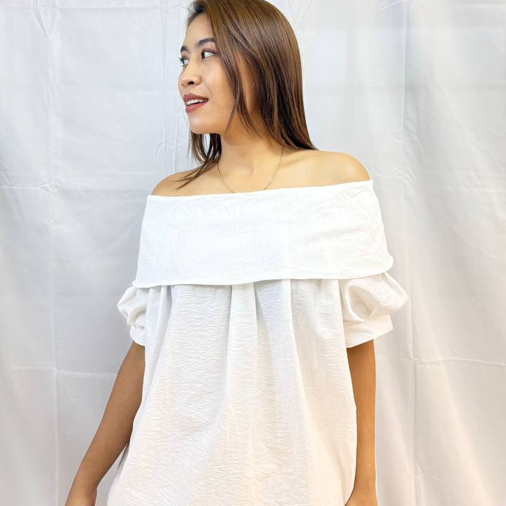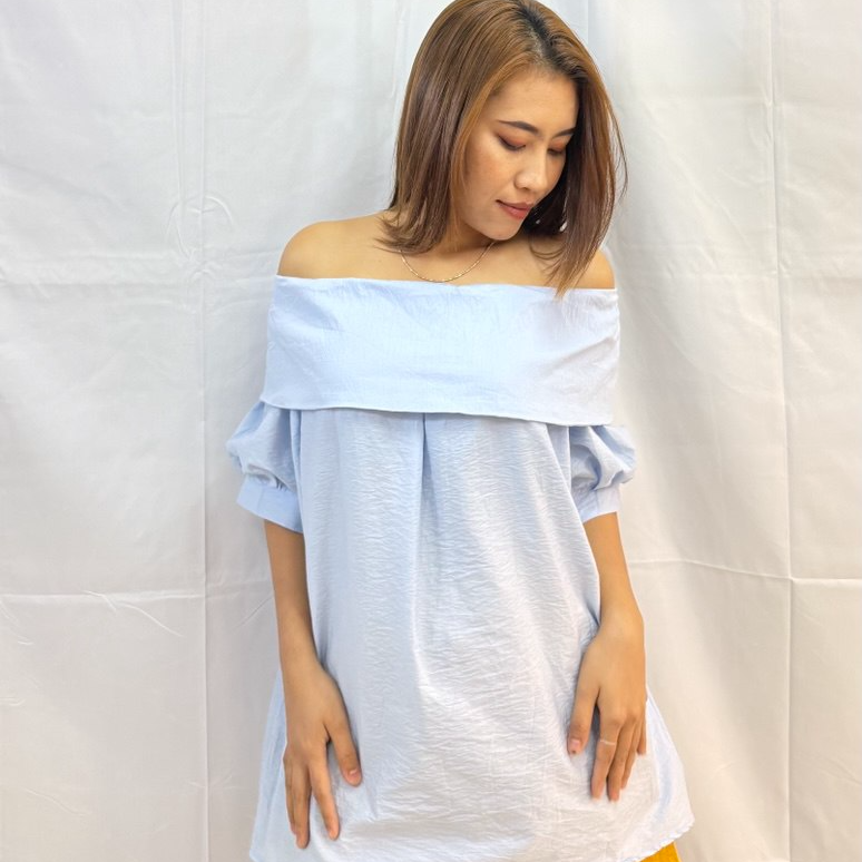 The Soft Cloud Off-Shoulder Top is a lightweight, airy off-shoulder top designed for effortless elegance. Featuring soft cloud-like textures, gentle gathers, and relaxed puff sleeves, this piece drapes beautifully for a feminine and relaxed silhouette. Perfect for casual days or dressed-up moments, it brings a fresh, breezy charm to any outfit. Measurements: Bust: 126cm Length: 67cm